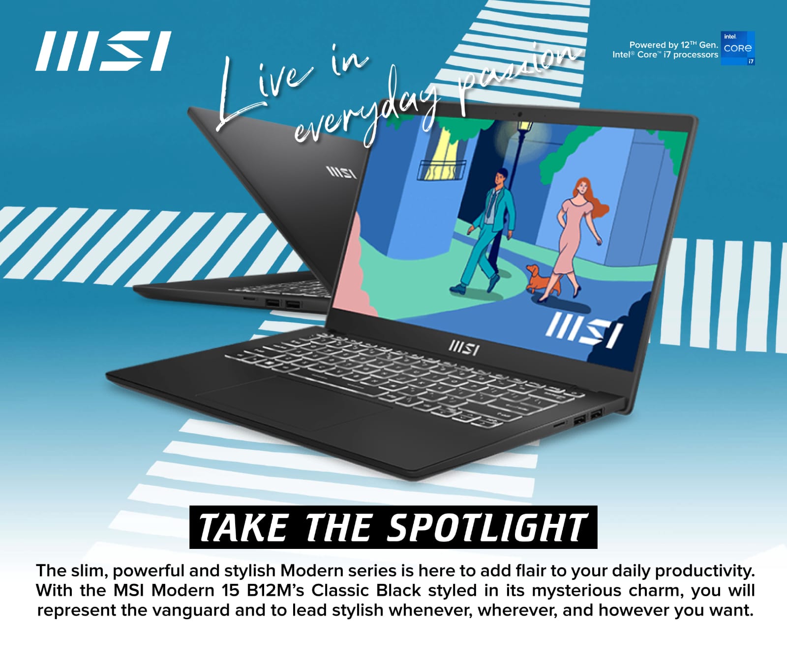 The slim, powerful and stylish Modern series is here to add flair to your daily productivity. With the MSI Modern 15 B12M’s Classic Black styled in its mysterious charm, you will represent the vanguard and to lead stylish whenever, wherever, and however you want.